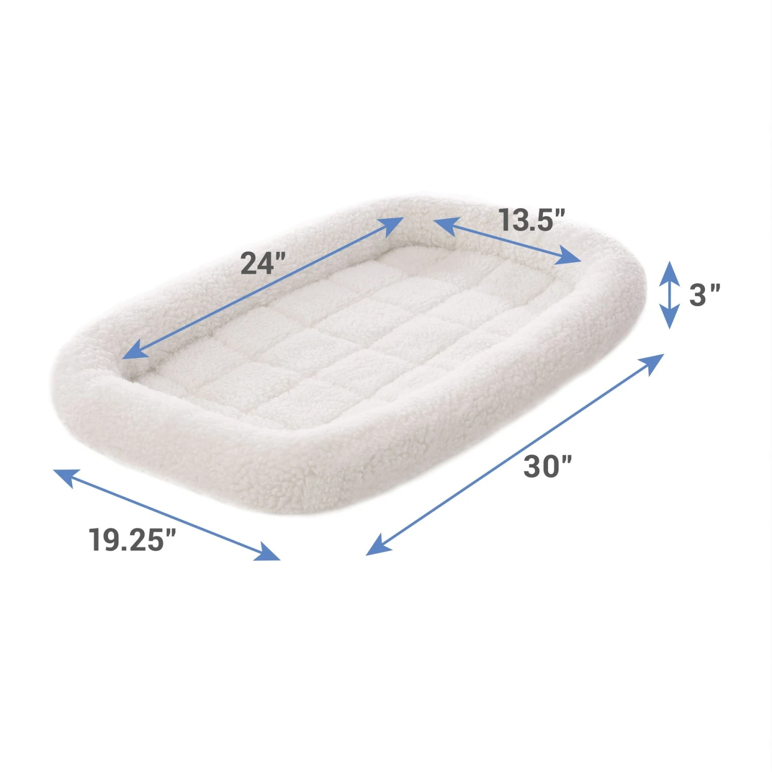 Frisco Quilted Dog Crate Mat, Ivory, 30-in — The Frisco Crate Mat Pet Bed makes your pet’s crate, carrier, kennel, favorite spot or home away from home even cozier. The quilted bed is made with ultra-soft material with a foam pad on the bottom for extra cushioning.